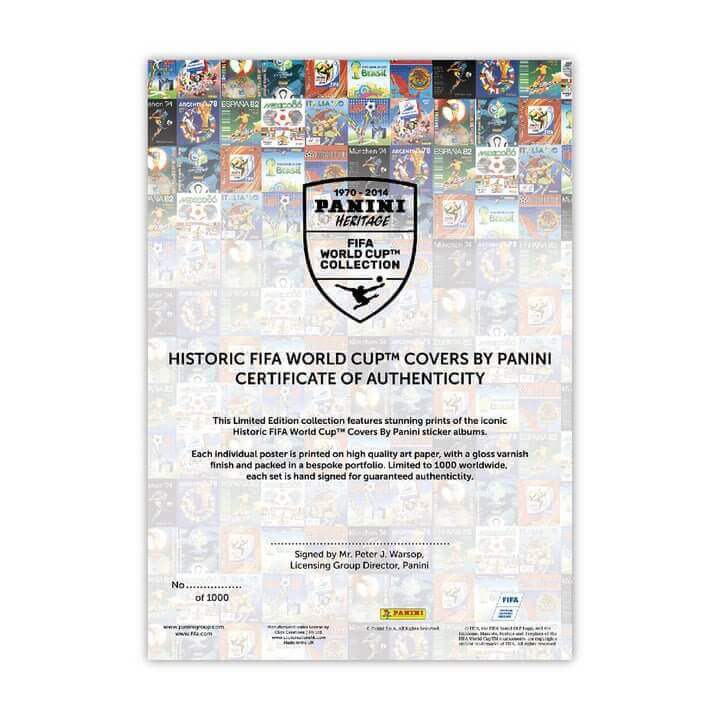 Allt förpackat i ett skyddande fodral, varje set innehåller 12 album med klistermärken, litografiskt producerade enligt högsta standard, ett numrerat äkthetsintyg signerat av Peter J Warsop, chef för licensgruppen.